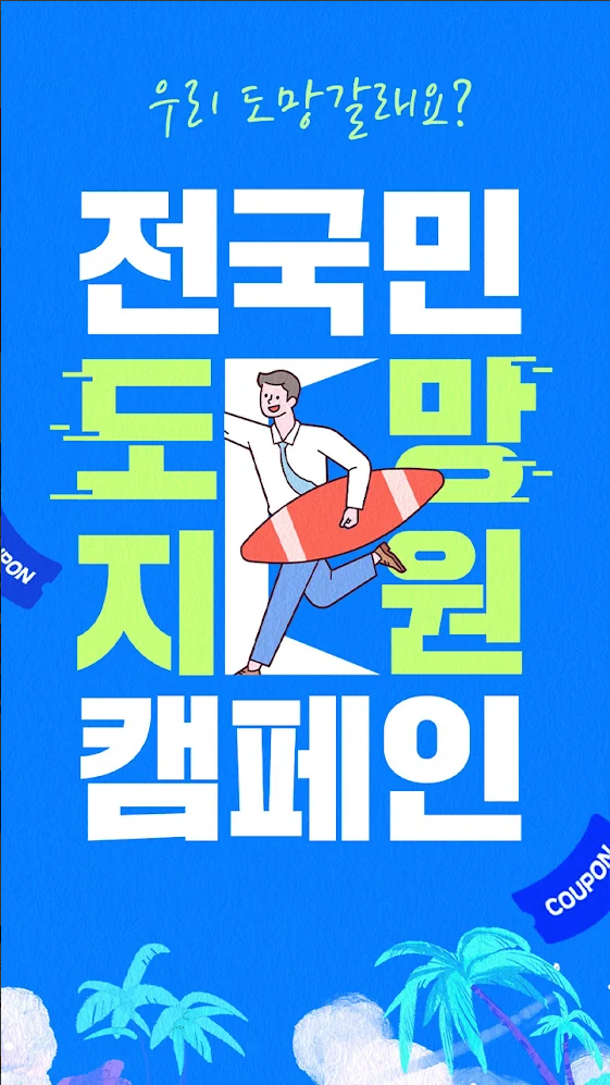 전국민 도망 지원 캠페인! 호텔부터 펜션, 모텔, 게스트하우스까지 전국 모든 숙소 모두에게 최대할인.