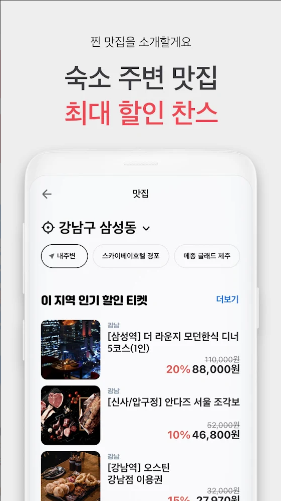 숙소 주변 맛집 최대 할인 찬스, 인기 액티비티 모바일 티켓 할인.