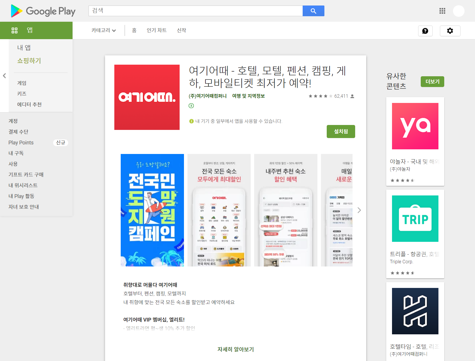 여기어때 - 호텔, 모텔, 펜션, 캠핑, 게하, 모바일티켓 최저가 예약! - Google Play 앱