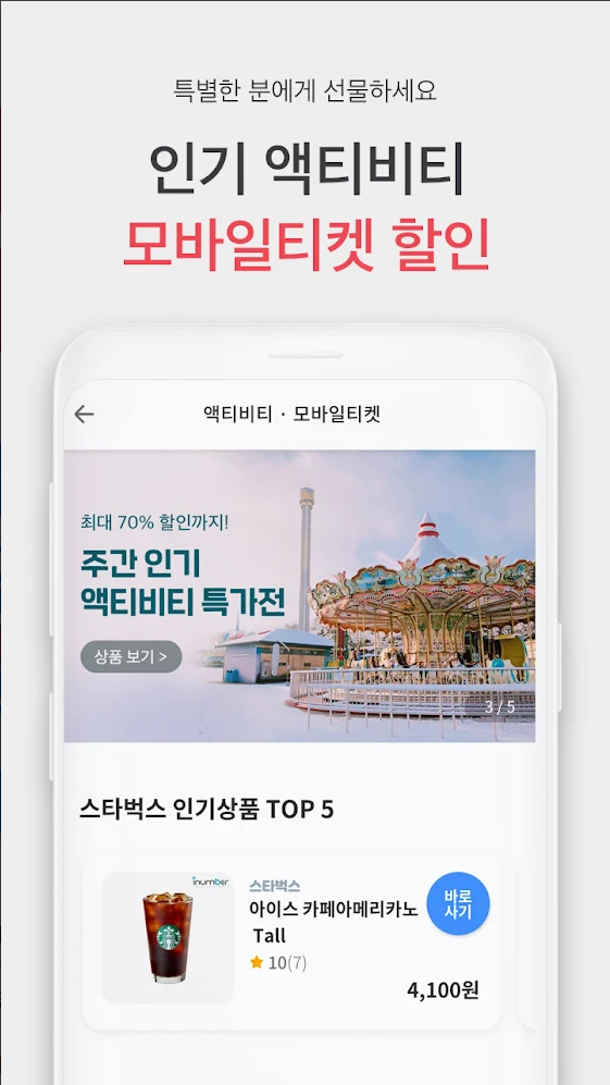 - 인기 액티비티, 카페, 편의점 모바일티켓 특가