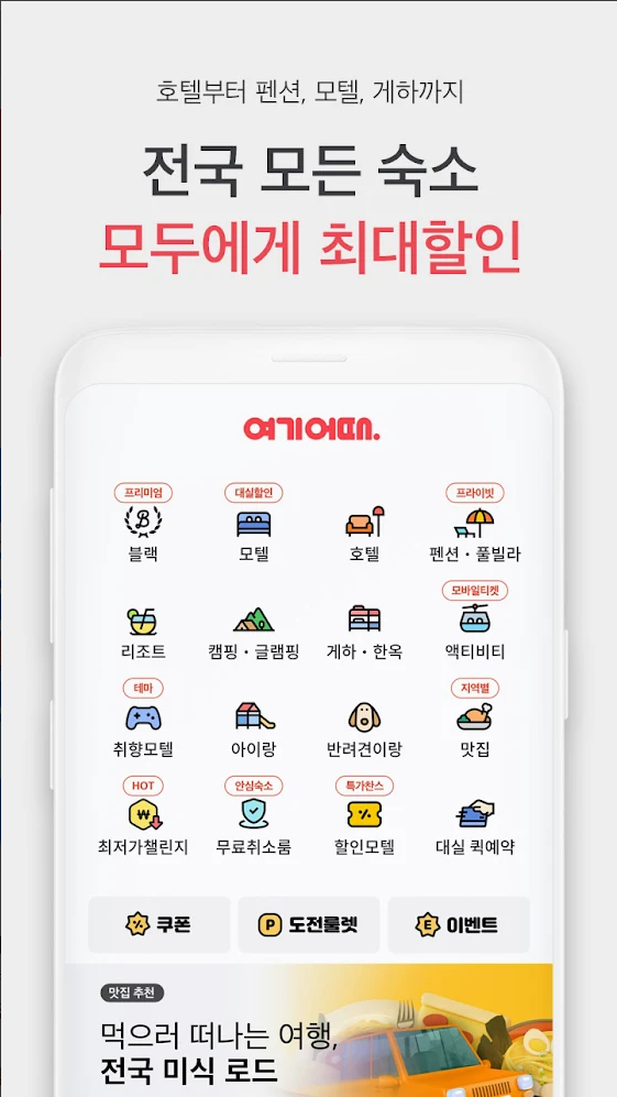 여기어때, 호텔, 모텔, 펜션, 캠핑 및 모바일티켓 최저가 예약!
