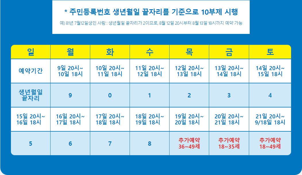 ○ (예약기간 및 접종백신) 8.2.(월) 20시 ~ 8.18.(수) 18시, 아스트라제네카