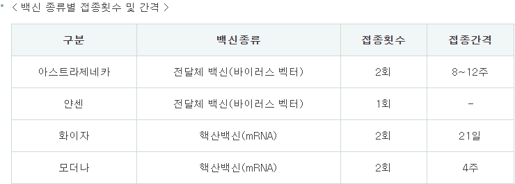 2021년 6월 기준, 국내에서는 네 가지 종류의 코로나19 백신이 사용 가능합니다.