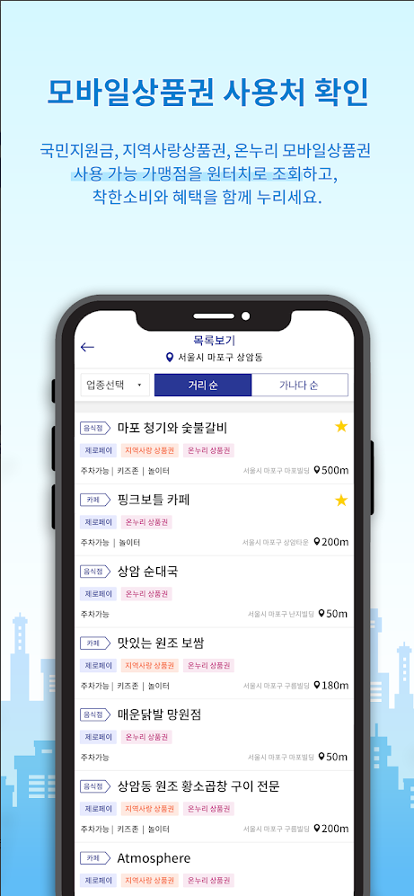 제로페이 가맹점 검색내 주변, 우리동네 제로페이 가맹점을ZMAP 검색 기능을 통해한눈에 볼 수 있습니다. 모바일상품권 사용처 확인국민지원금, 지역사랑상품권, 온누리 모바일상품권사용 가능 가맹점을 원터치로 조회하고,착한소비와 혜택을 함께 누리세요.