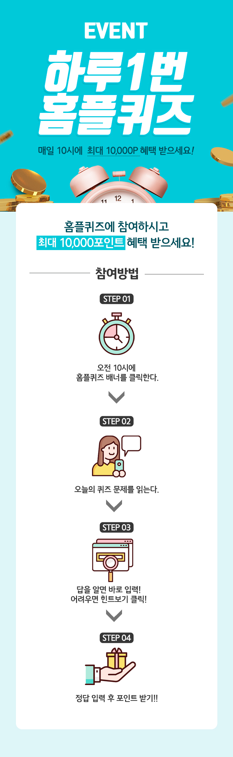 정답자는 즉시 10포인트부터 최대 10,000포인트까지 랜덤으로 적립할 수 있습니다.