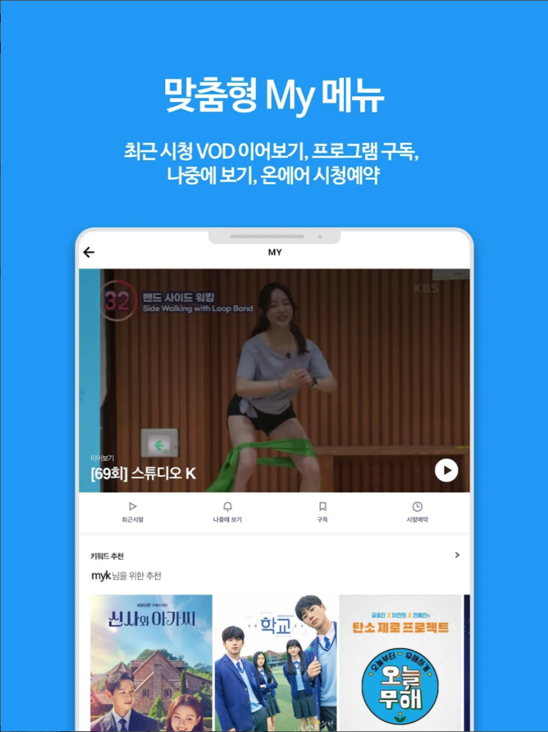 KBS 온에어, 다시보기, 다시듣기, 클립영상을 볼 수 있는 모바일 동영상 서비스 KBS my K입니다.