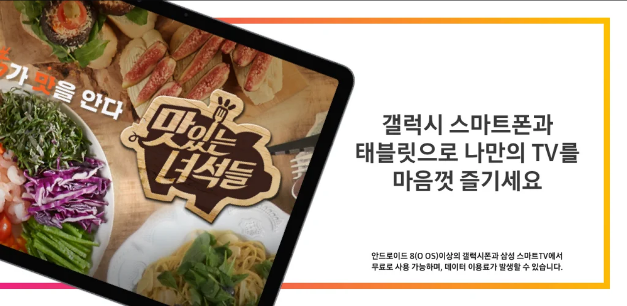 갤럭시 스마트폰과 태블릿으로 나만의 TV 를 마음껏 즐기세요.