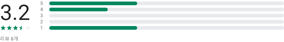 앱 평점 및 별표 1, 2, 3, 4, 5개 리뷰의 개수에 따라 표시되는 막대그래프는 앱의 평가 횟수가 매우 적은 경우가 아니라면 사용자 리뷰의 전체 기간 평균값이 아닌 앱의 현재 품질 평점을 바탕으로 합니다.