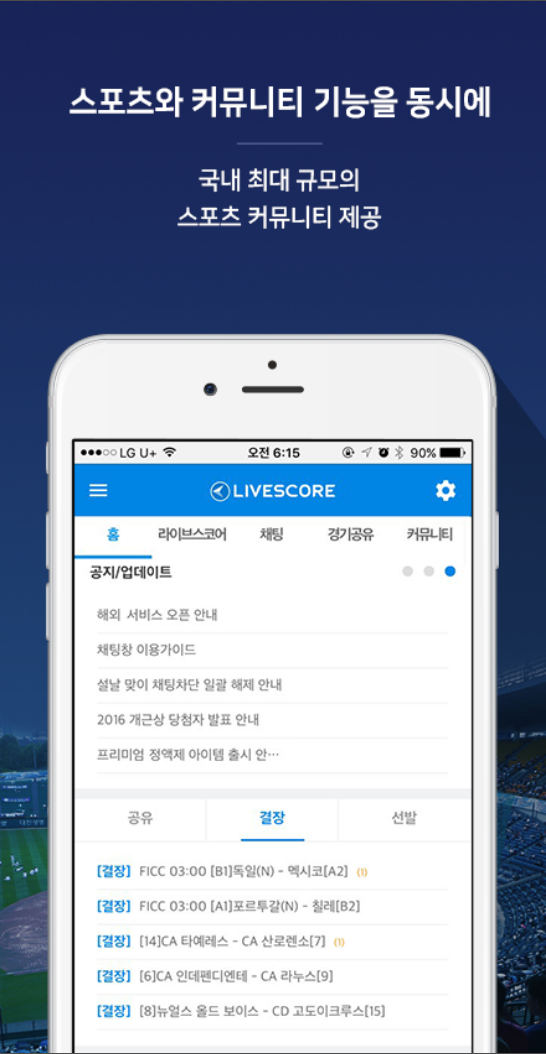 국내 최대 규모 라이브스코어 LIVESCORE 공식 어플