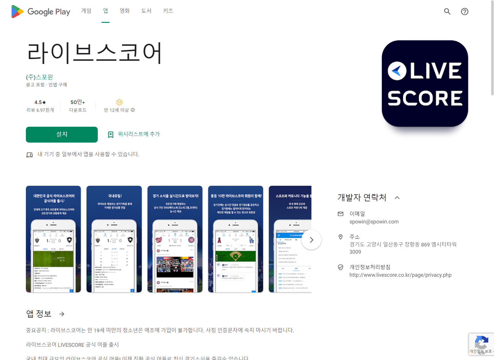 국내 최대 규모 라이브스코어 LIVESCORE 공식 어플